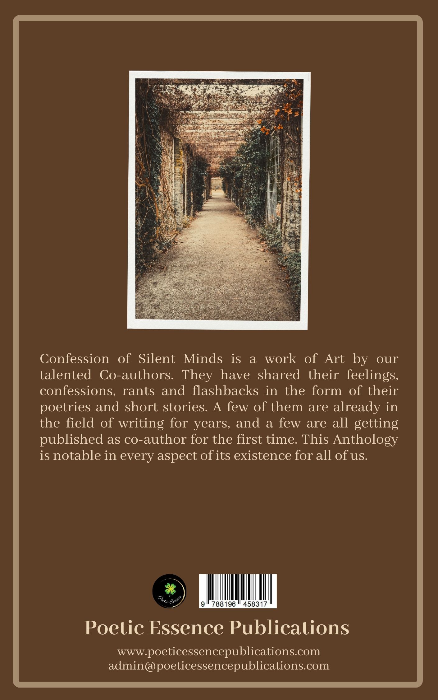 Confession of Silent Minds is a work of pure fiction. The names, incidents and characters portrayed in it illustrate the co-author’s thought processes and personal experiences. They have shared their feelings, rants, memories and flashbacks in the form of their poetries and short stories. Any resemblance with actual persons, living or dead, is pure coincidence. A few of them are already in the field of writing for decades, and a few are all getting published as published for the first time. This Anthology is notable in every aspect of its existence for all of us.