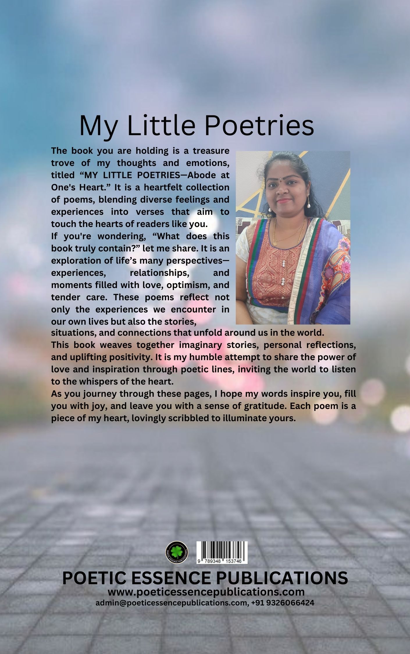 The book you are holding is a treasure trove of my thoughts and emotions, titled “MY LITTLE POETRIES—Abode at One’s Heart.” It is a heartfelt collection of poems, blending diverse feelings and experiences into verses that aim to touch the hearts of readers like you.