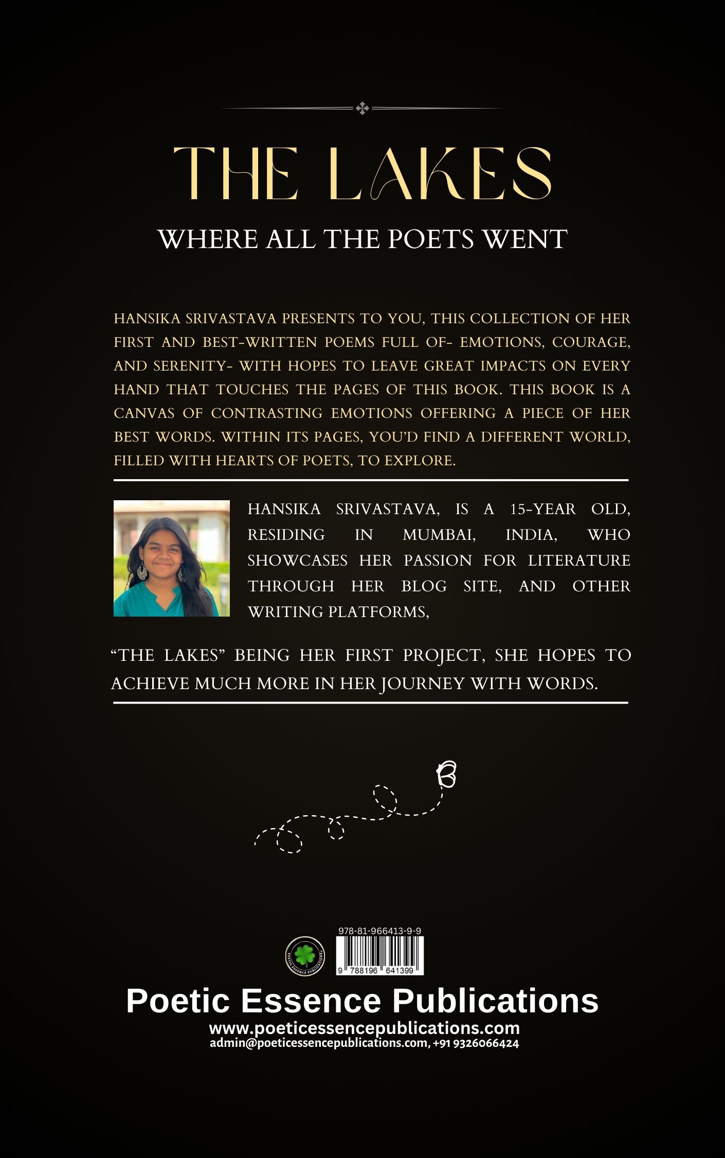 “The Lakes: Where All the Poets Went” invites you to immerse yourself in the poetic world crafted by Hansika Srivastava. In this captivating collection, Hansika shares her very first and finest poems, infused with a rich tapestry of emotions, unwavering courage, and a sense of serene beauty. As you turn the pages of this book, you’ll embark on a journey through the realm of contrasting emotions, where every word is a brushstroke on the canvas of her soul. This book serves as a gateway to a unique world, where the hearts of poets come to life, offering an exploration of profound verses that aim to touch the very core of your being.